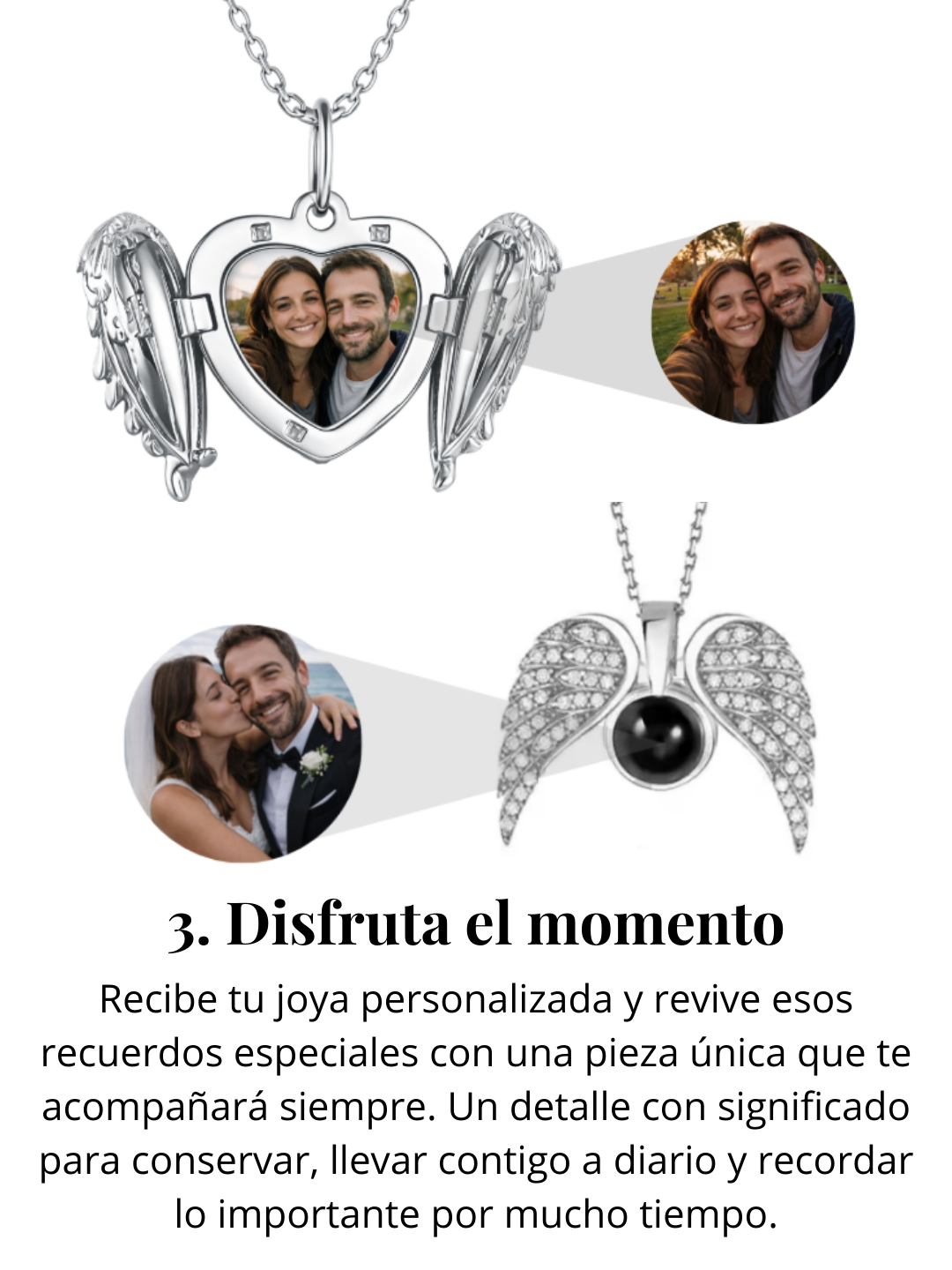 Estés donde estés, en casa, en el trabajo o de viaje, este collar te permite ver ese momento especial cuando quieras. Proyección HD y diseño elegante para acompañarte cada día.